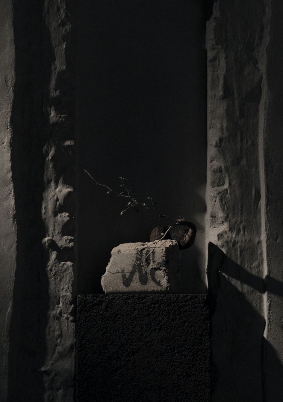 it was important for us to preserve the structural and textural details that historically existed and expand upon the foundation by incorporating sustainable materials such as patina'd cork, japanese washi, yakisugi, and steel. we added purposeful moments of negative space to naturally highlight sculptural botanical pieces and washi artworks, while intentionally keeping some of the uneven walls and carefully adding layers of plaster to create movement and texture, allowing the whole space to act as a surface of art.