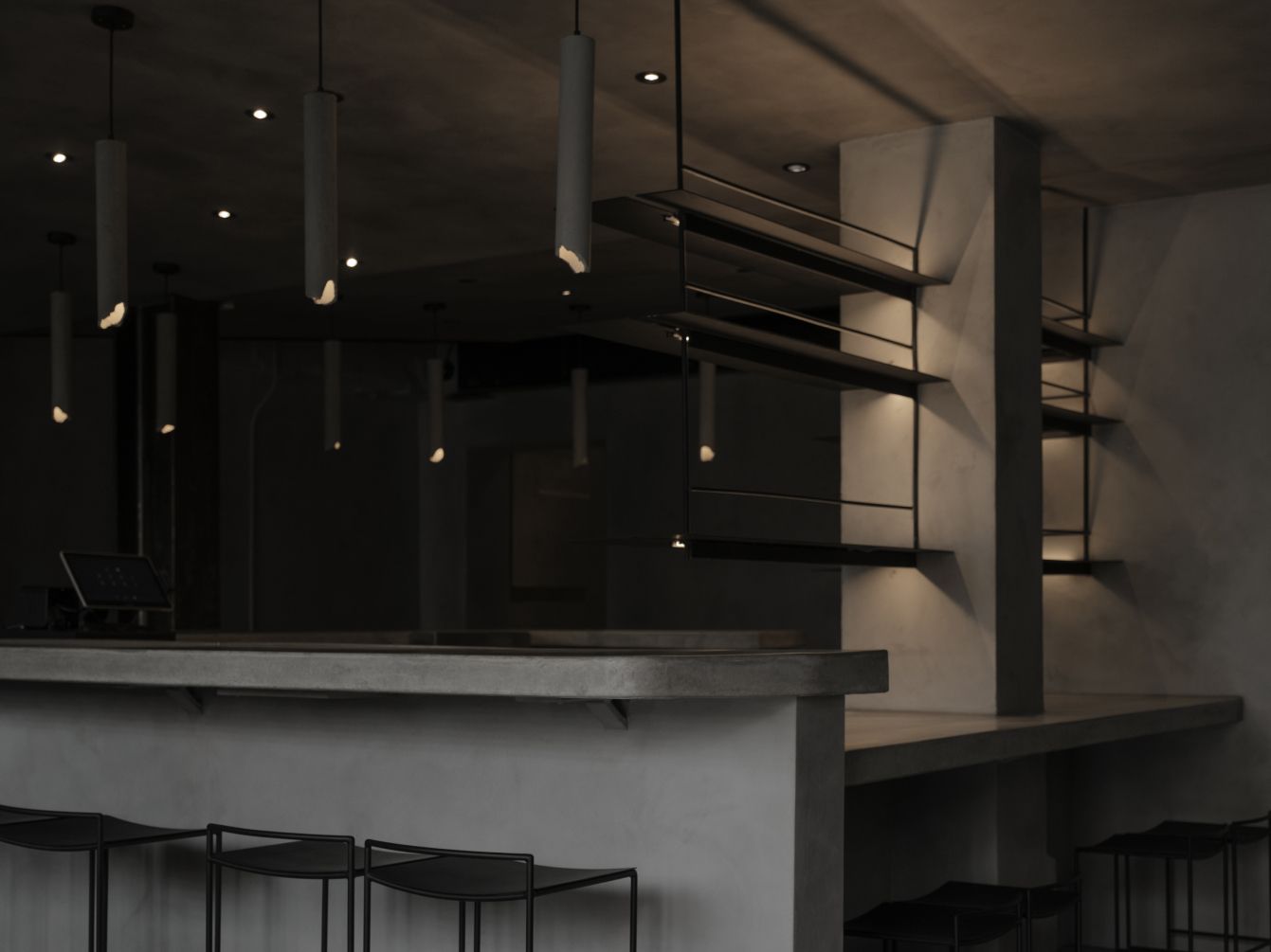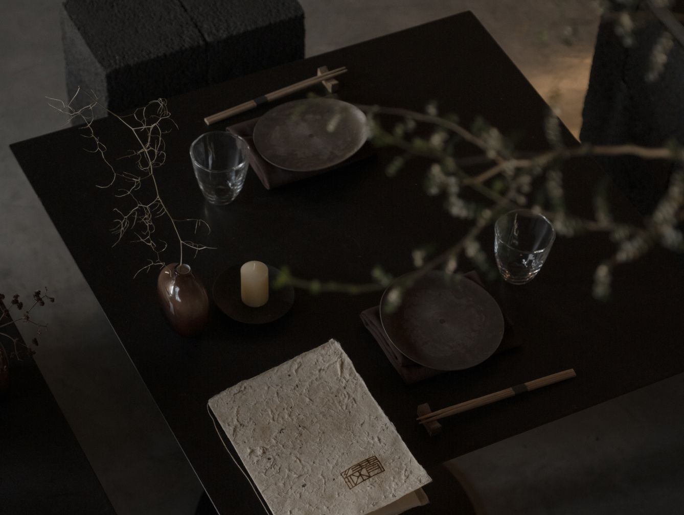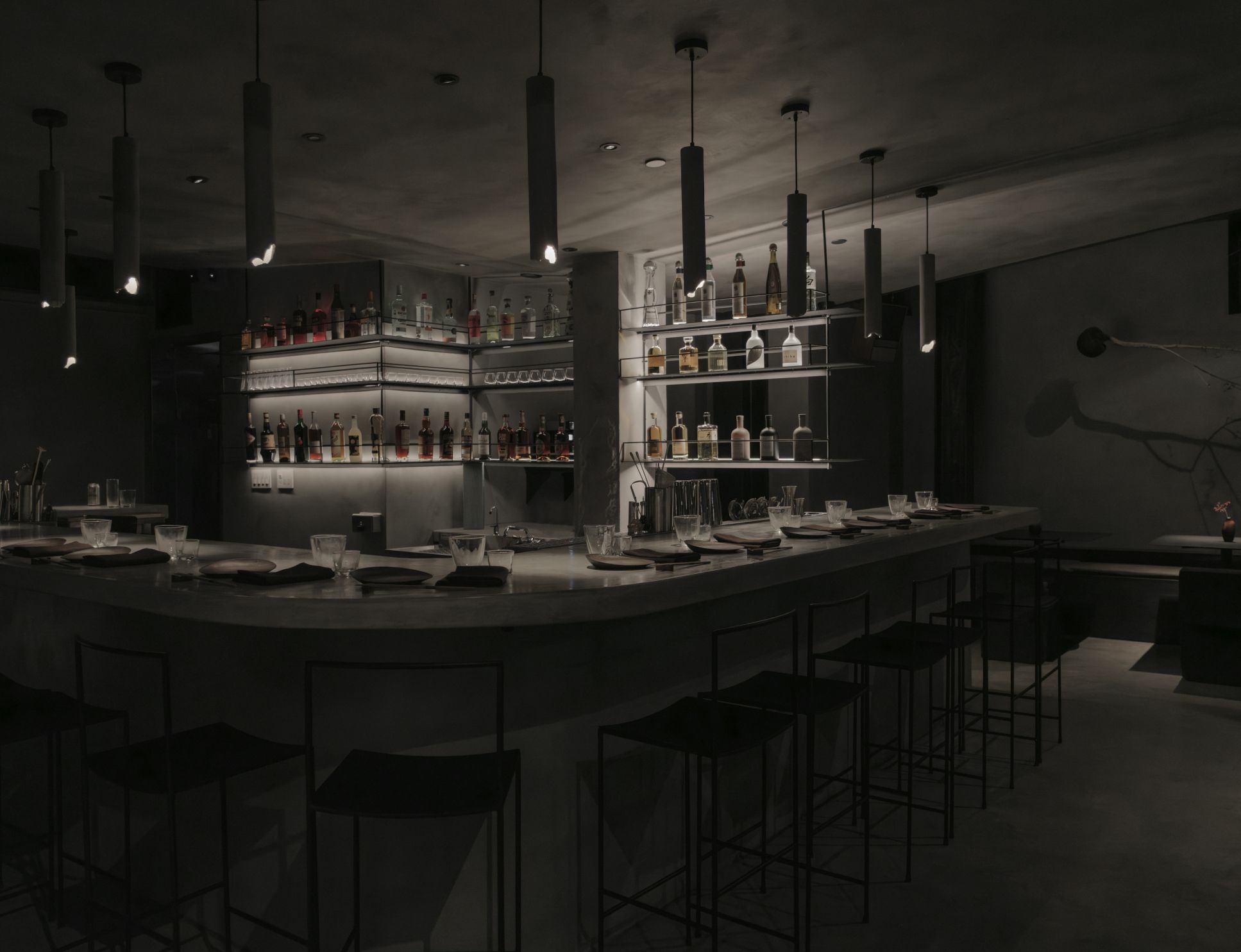 rokusho is a strong, masculine dining space that presents an honest sense of permanence imbued with raw simplicity.